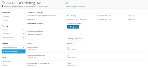 Let op: Elektronisch ondertekenen van de jaarrekening en notulen door de klant is niet mogelijk als de opdrachtverantwoordelijke accordeert of vaststelt namens de klant.