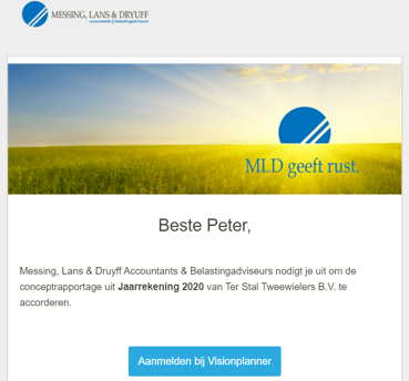 Met het versturen van e-mail notificaties stimuleren we gebruikers om tijdig te accorderen of te ondertekenen om zo de doorlooptijd tussen het definitief maken van de jaarrekening en eventuele deponering van de jaarrekening bij de Kamer van Koophandel zo kort mogelijk te houden.