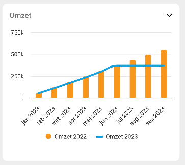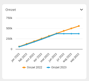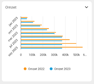 Binnen de widgetmodule kunnen gebruikers informatie bekijken over hun omzet, liquiditeit, EBIDTA, brutomarge en bedrijfskosten. Om toegang te krijgen tot deze informatie, moeten gebruikers de benodigde rechten hebben.
