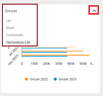 Door op de pijl naar beneden te klikken, kunnen de verschillende grafieken worden bekeken. Hierdoor wordt een lijst weergegeven met alle beschikbare grafiektypen.